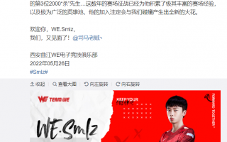 IT业界 Smlz(韩金)选手正式加入西安曲江 WE 电子竞技俱乐部英雄联盟分部 Smlz 选手以自由人身份正式加入西安曲江 WE 电子竞技俱乐部英雄联盟分部,担任下路位置,征战 2022 夏季赛。... IT业界 2022-05-27 1.5K #英雄联盟 #电竞